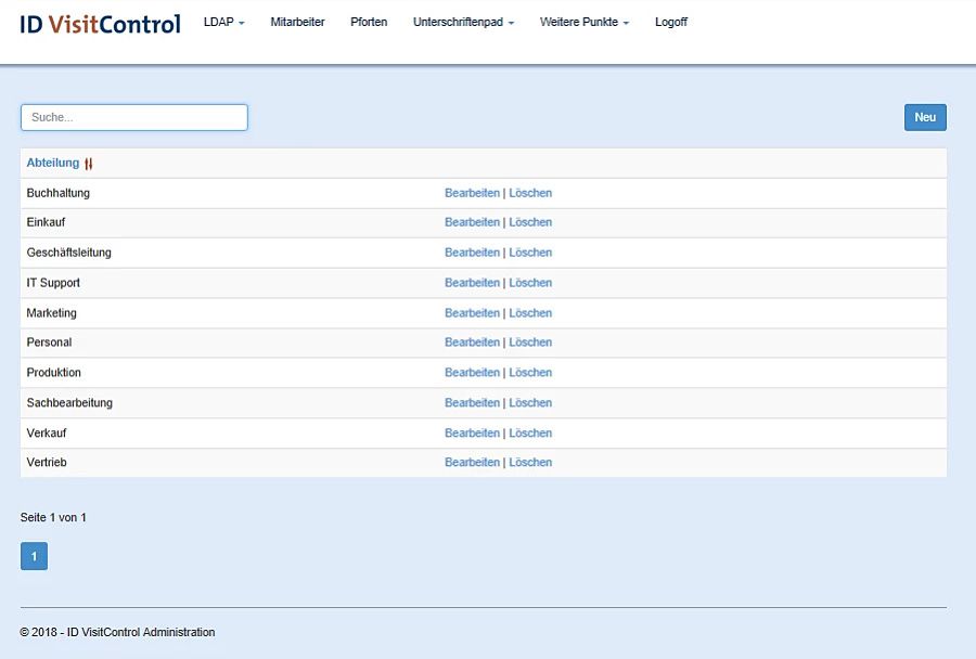 Der Mitarbeiter kann im Modul Intranet die Besucher sehen, die für die gesamte Abteilung vorregistriert wurden.