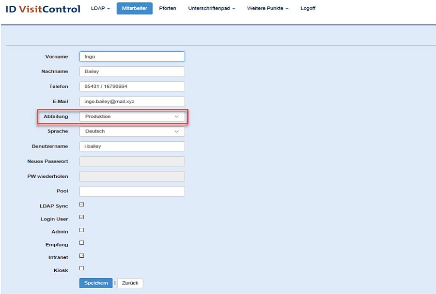 Der Mitarbeiter kann im Modul Intranet die Besucher sehen, die er selbst angelegt hat und Besucher die er für einen anderen Mitarbeiter angelegt hat.