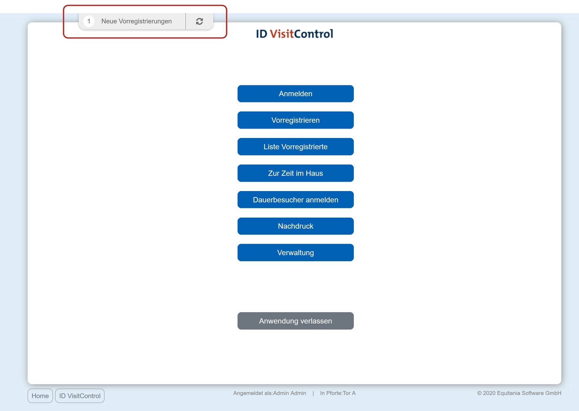 Mit dem Modul Benachrichtigungen erhält das Personal am Empfang eine aktive Meldung im Hauptmenü der Besucherverwaltung ID VisitControl, dass eine neue Vorregistrierung durchgeführt wurde. In der Übersicht der vorregistrierten Besucher können die Daten des Besuchers aufgerufen und die notwendigen Vorbereitungen getroffen werden.