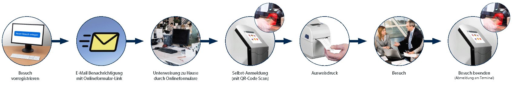 Dies verkürzt die Aufenthaltszeit des Besuchs am Empfang. Das Ordnen und Archivieren von Papierformularen entfällt.