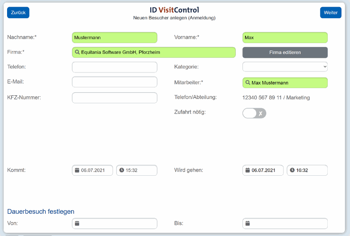 ID VisitControl Intranet - Einzelbesucher Vorregistrierung