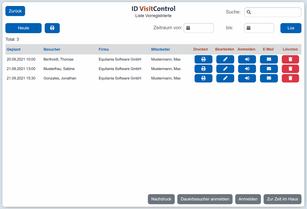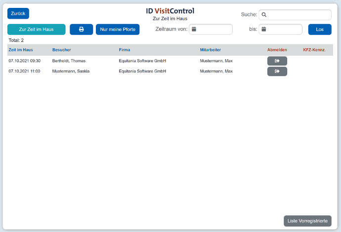 ID VisitControl Intranet - Multi Besucher Vorregistrierung